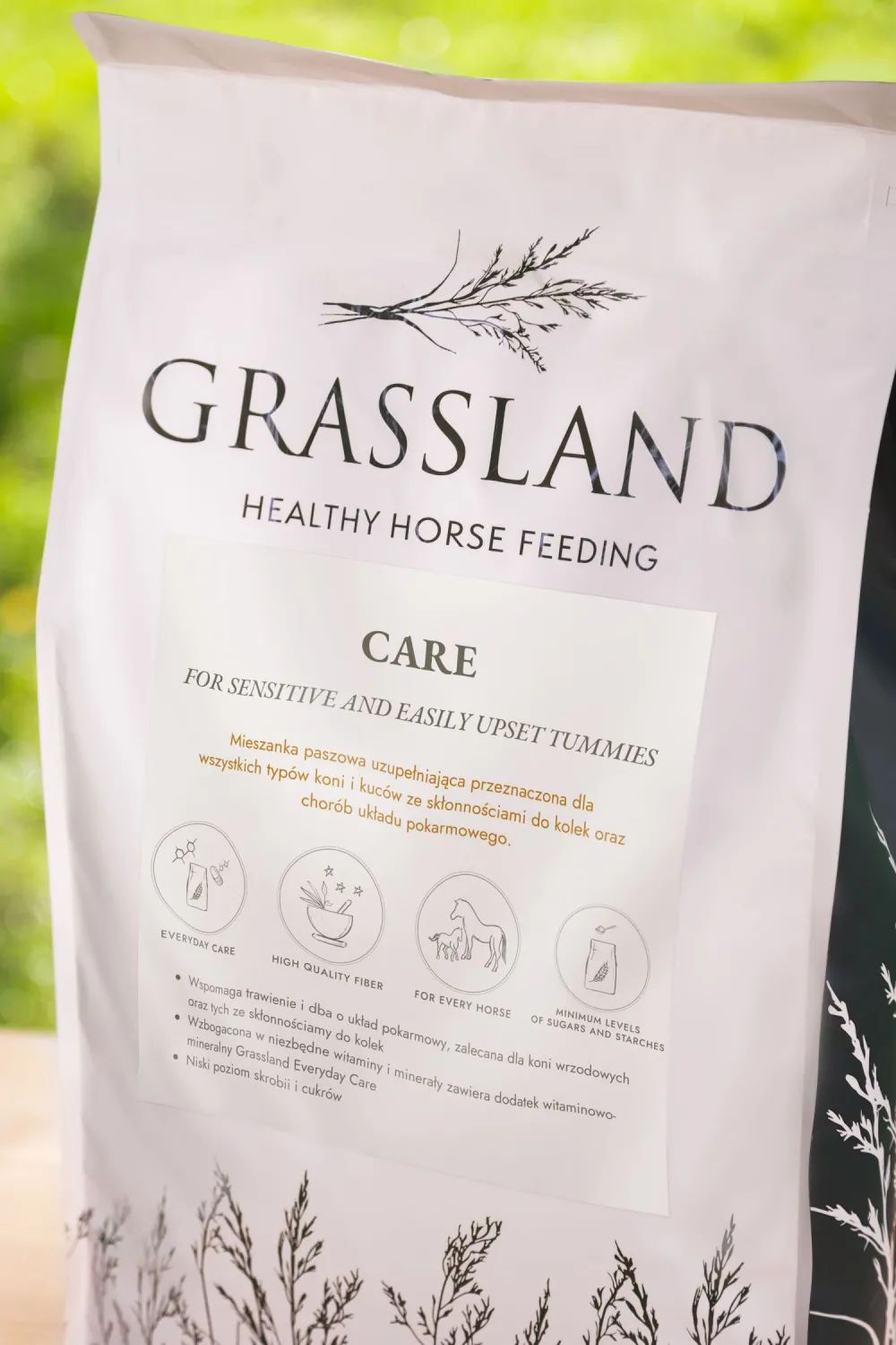 Pełnowartościowa pasza Care Musli Grassland bogata we włókno pochodzące z trawy ryegrass to niezwykle apetyczne musli z dodatkiem ziół i kokosa. Niski udział energii (1 kg paszy jest źródłem 7,7 MJ) oraz jedynie 8% skrobi i cukru łącznie sprawia, że nadaje się dla koni z wszelkimi chorobami metabolicznymi. Sprawdzi się jako zamiennik owsa, baza diety lub dodatek do codziennego karmienia. Paszę można łączyć z owsem, najlepiej przy jednoczesnym suplementowaniu diety o dodatek Grassland Everyday Care, w celu utrzymania odpowiedniej ilości witamin i minerałów.