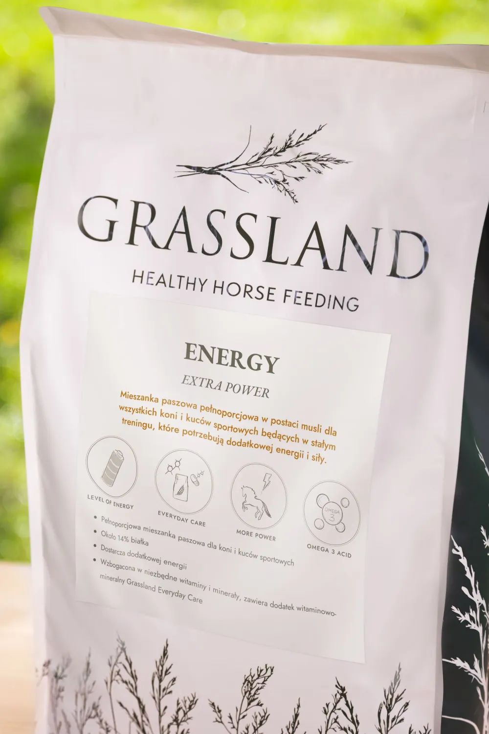 Pełnowartościowa mieszanka paszowa Energy Musli Grassland w postaci smacznego i aromatycznego (z dodatkiem ziół) musli dla koni i kucy w treningu sportowym wszystkich dyscyplin, które potrzebują dodatkowej energii podczas treningu. Energia na poziomie 14 MJ, sprawi że w czasie większego wysiłku i startu w zawodach zapewni dodatkową siłę oraz pozwoli ją szybko odzyskać.