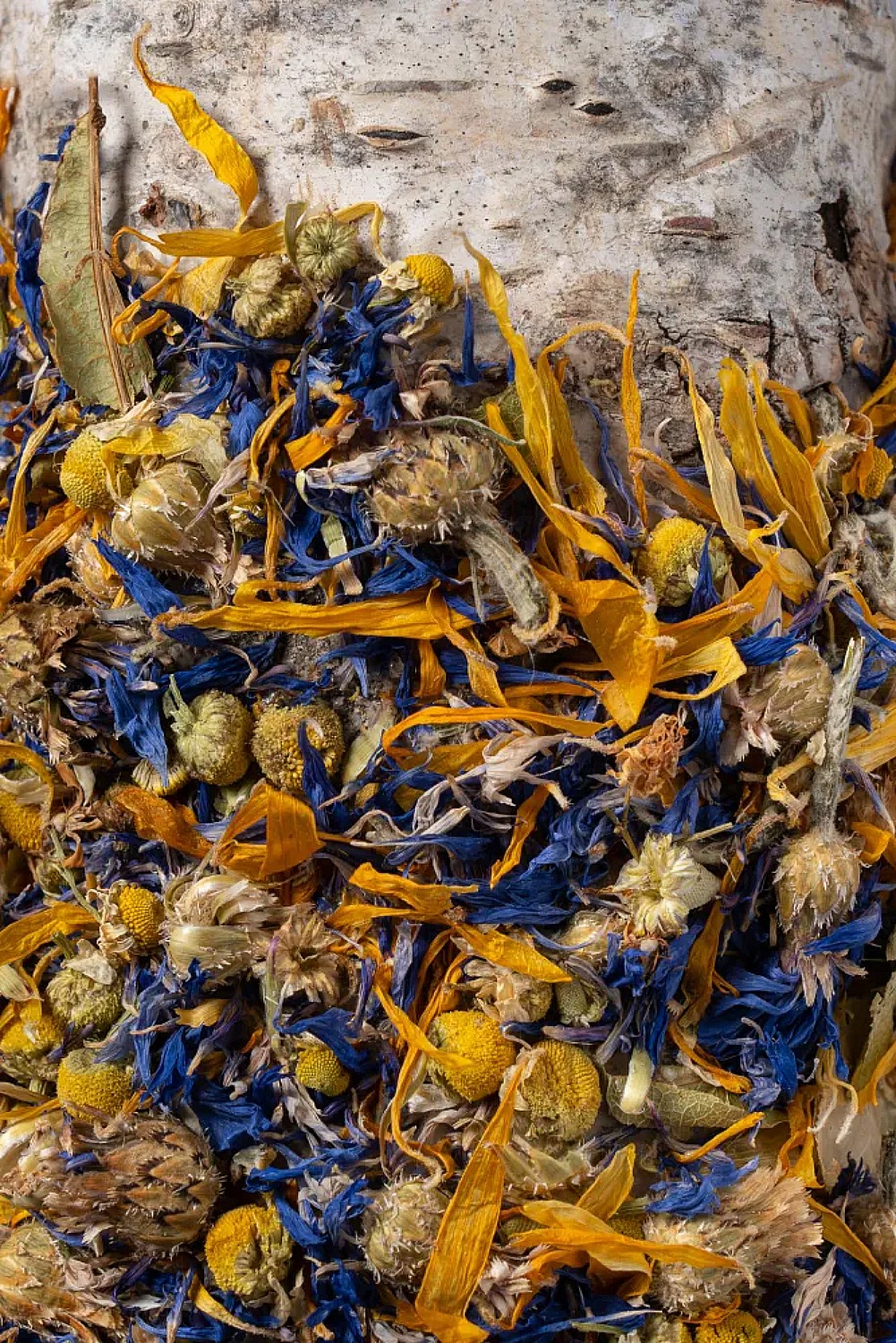 Drewno brzozowe, izomalt, chaber b艂awatek koszyczek, nagietek p艂atki, rumianek koszyczek, lipa kwiat z li艣ciem.