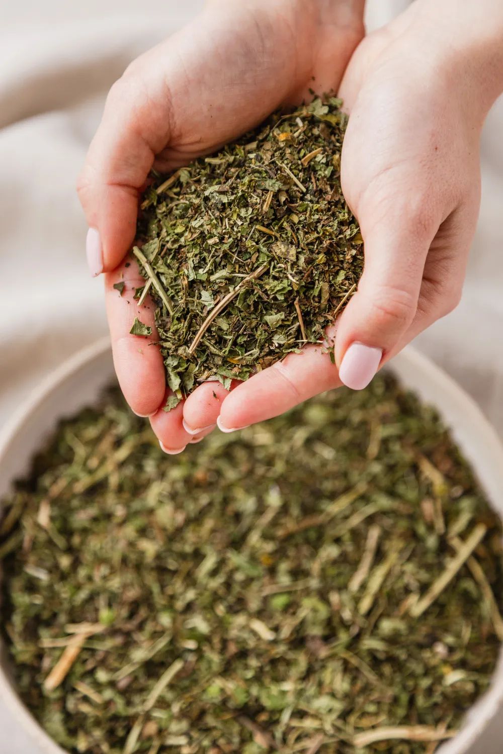 Produkt można podawać na sucho lub po zalaniu gorącą wodą w stosunku 1:1 w formie przestududzonngo naparu.